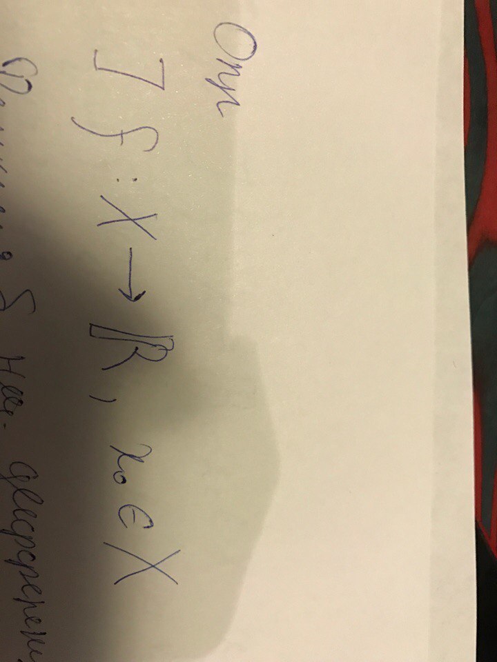 Существует функция "эф" - отображение множества "икс большое" во множество действительных чисел "эр", " икс нулевое" принадлежит множеству "икс большое"
