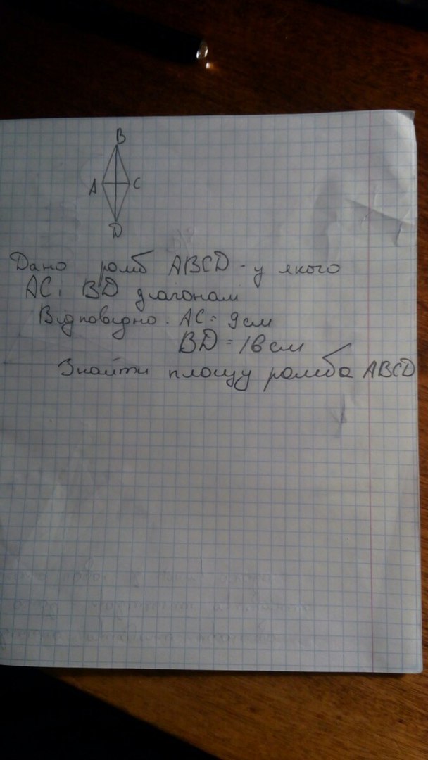 Площадь ромба равна половина произведения диагоналей 1/2*9*16=72