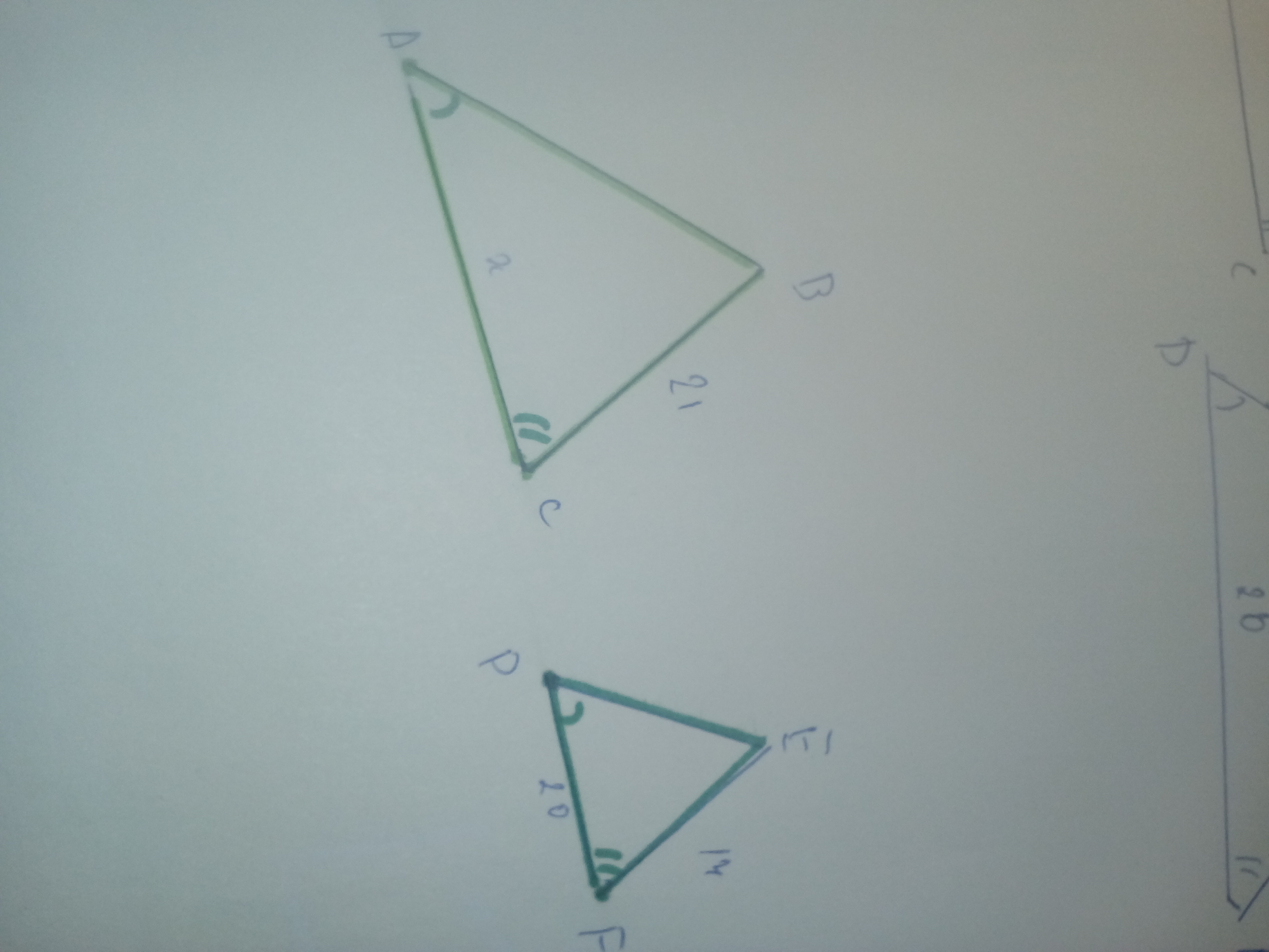 Треугольник ABC и DEF подобные, угол A равен углу D, угол C равен углу F, EF равно 14см, DF равно 20см, BC равно 21см. Найти AC.