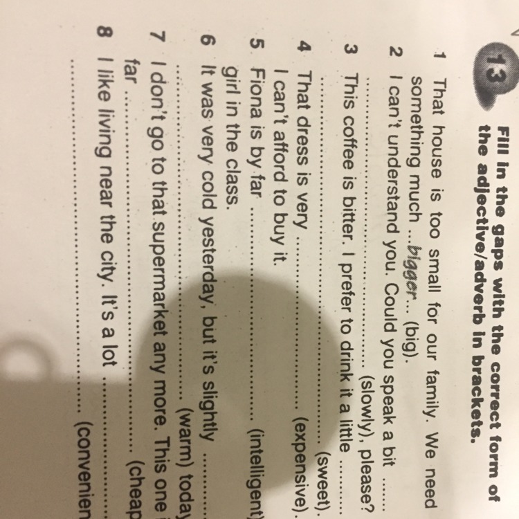 2. Slower 3. sweeter 4. Expensive 5. the most intelligent 6. Warmer 7. The cheapest 8. more convenient