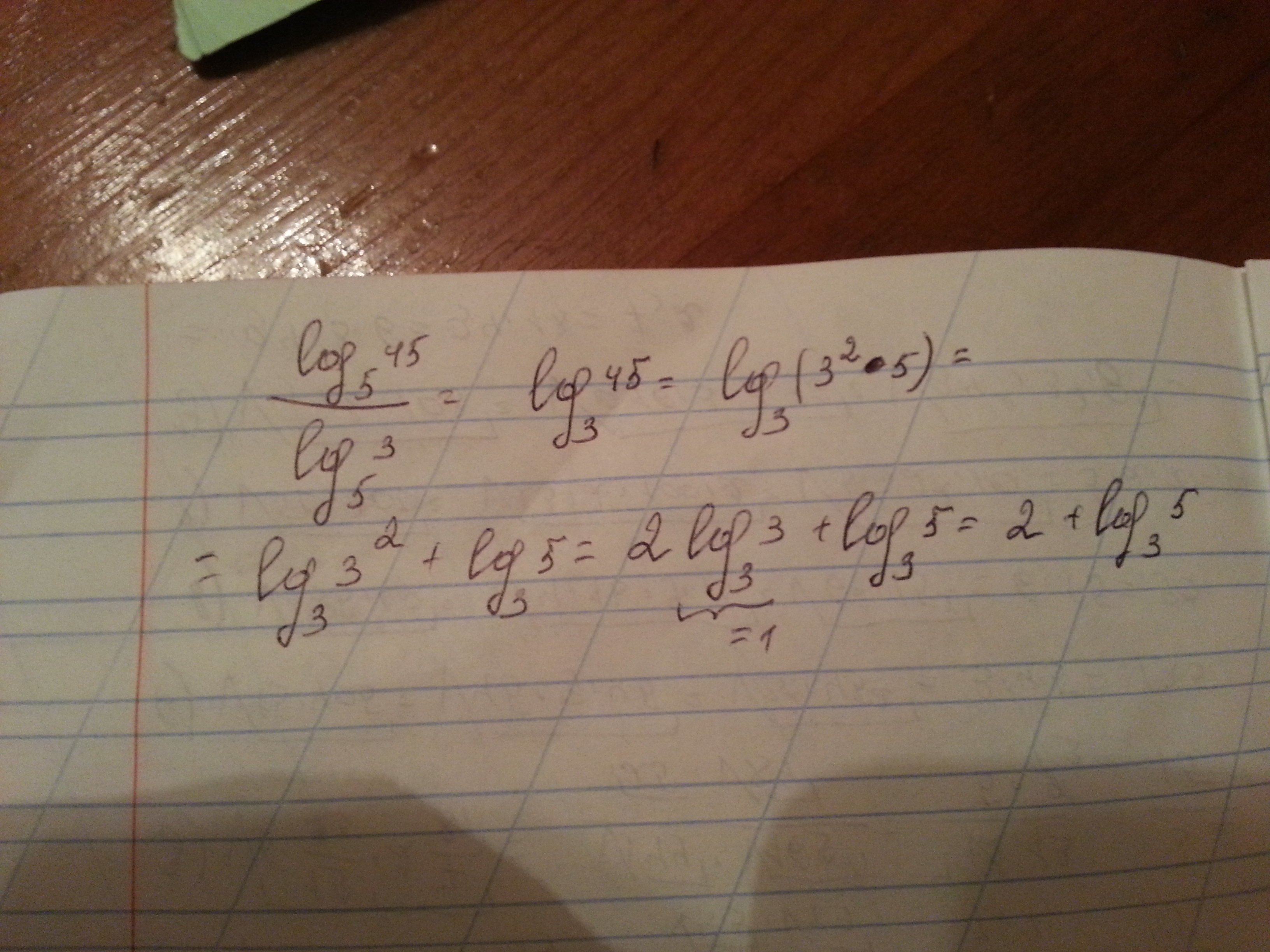 log(5)45/log(5)3=log(3)45=log(3)(5*3²)=log(3)5+log(3)3³=log(3)5+2