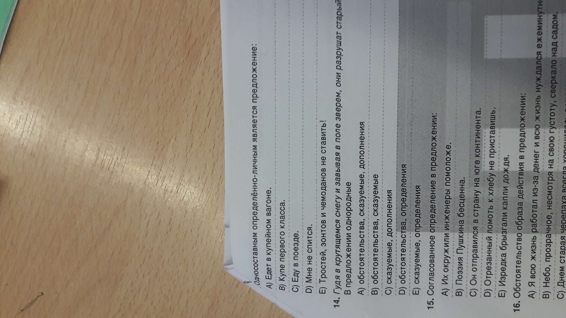 Ответ С.Еду в поезде.Можно подставить подлежащее 1 л. ед.ч. Я