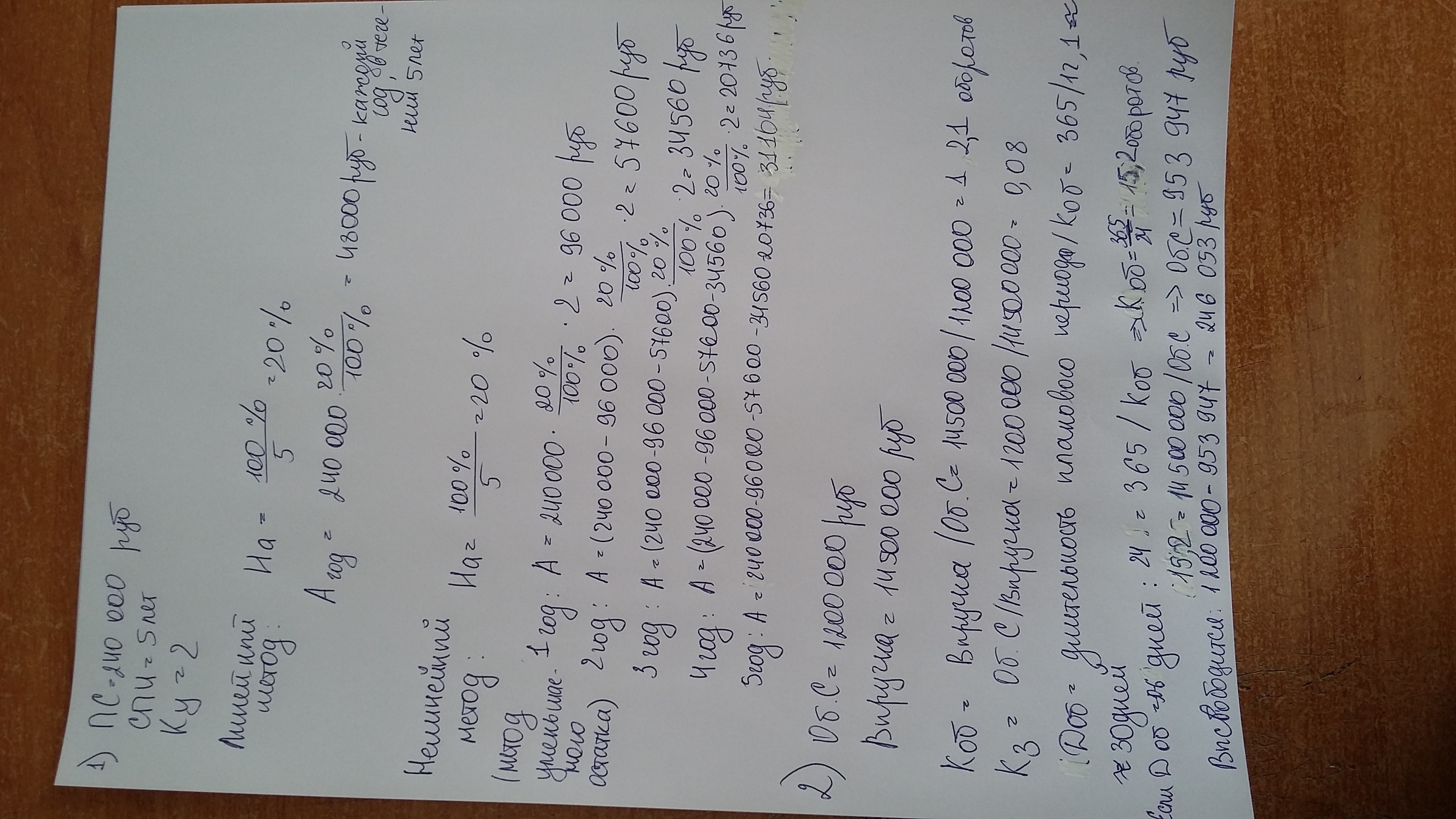 1.Первоначальная стоимость объекта основных средств 240 тыс. рублей, срок полезного использования 5 лет. Определите ежегодные суммы амортизации при линейном и нелинейном методе (коэффициент ускорения 2).