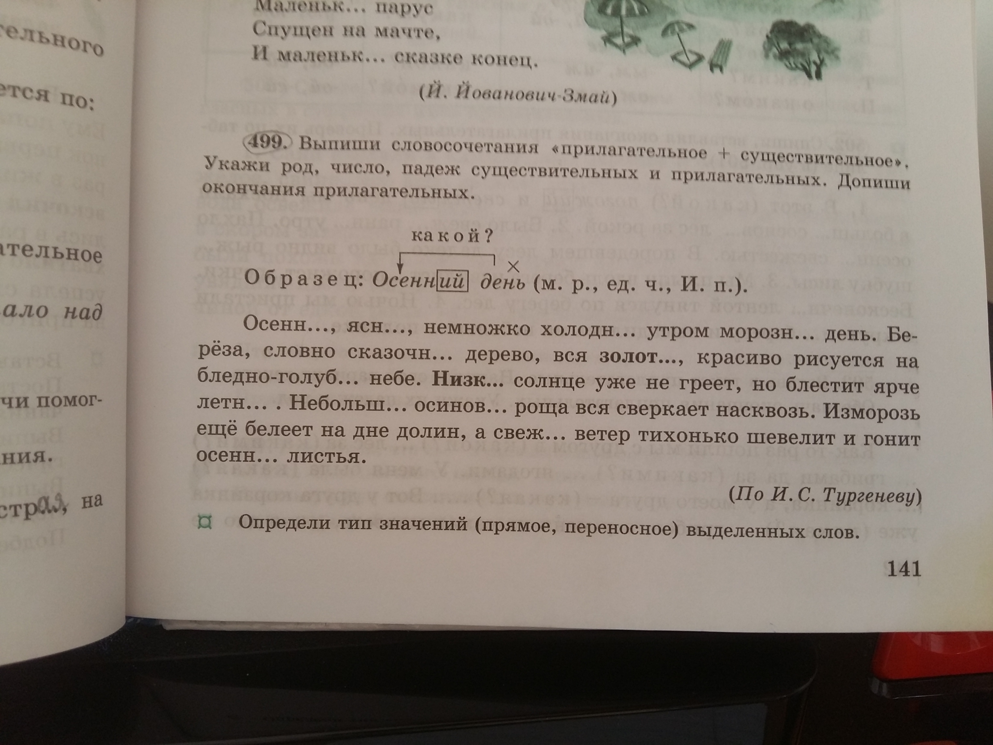ЗолотАЯ берёза (ж.р.,ед.ч.,И.п.),сказочнОЕ дерево(ср.р.,ед.ч.,И.п.),