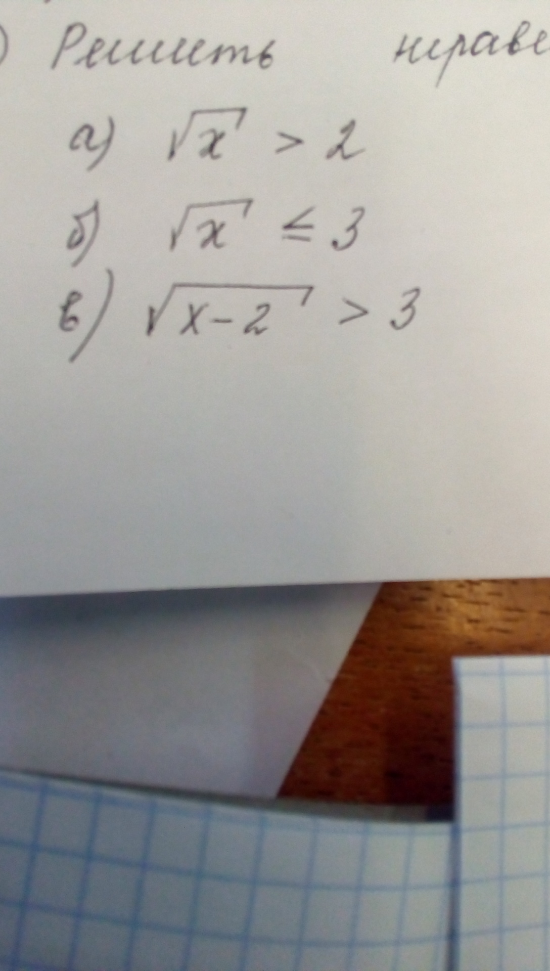 √х>2 ⇒ (√x)²>2² ⇒x>4
