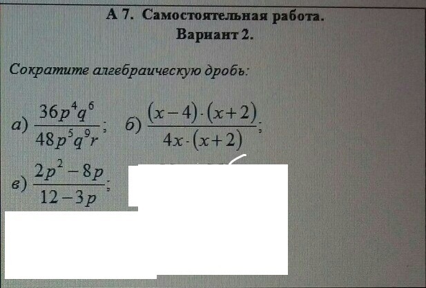 3) frac{2p^2-8p}{12-3p} = frac{2p(p-4)}{-(3p-12)} = frac{2p(p-4)}{-3(p-4)} = -frac{2p}{3}