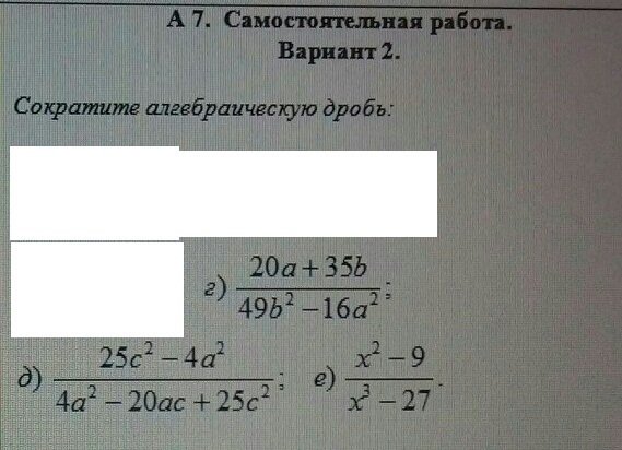 Сокращение алгеброических дробей производится по формулам сокращённого умножения.