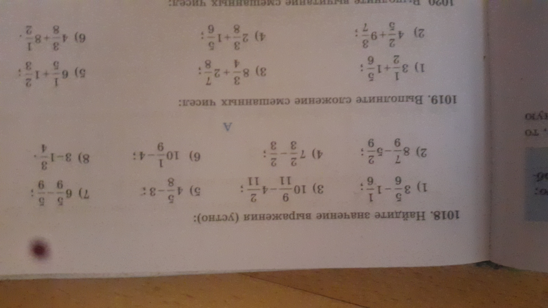 От целой части первой дроби отнимай целую часть второй дроби. И от числителя первой дроби отнимай числитель второй дроби. От знаменателя 1 дроби, отнимай знаменатель 2 дроби. Если знаменатели разные, находи общий множитель, например: У 5 и 6 общий множитель 30.