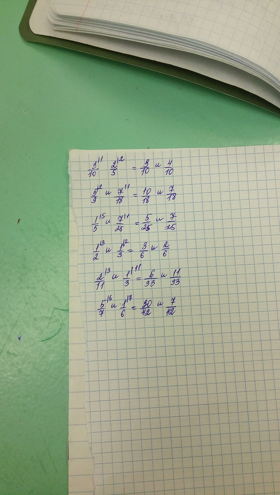 3/10 и 2/5 5/9 и 7/18 1/5 и 7/25 1/2 и 1/3 2/11 и 1/3 5/7 и 1/6