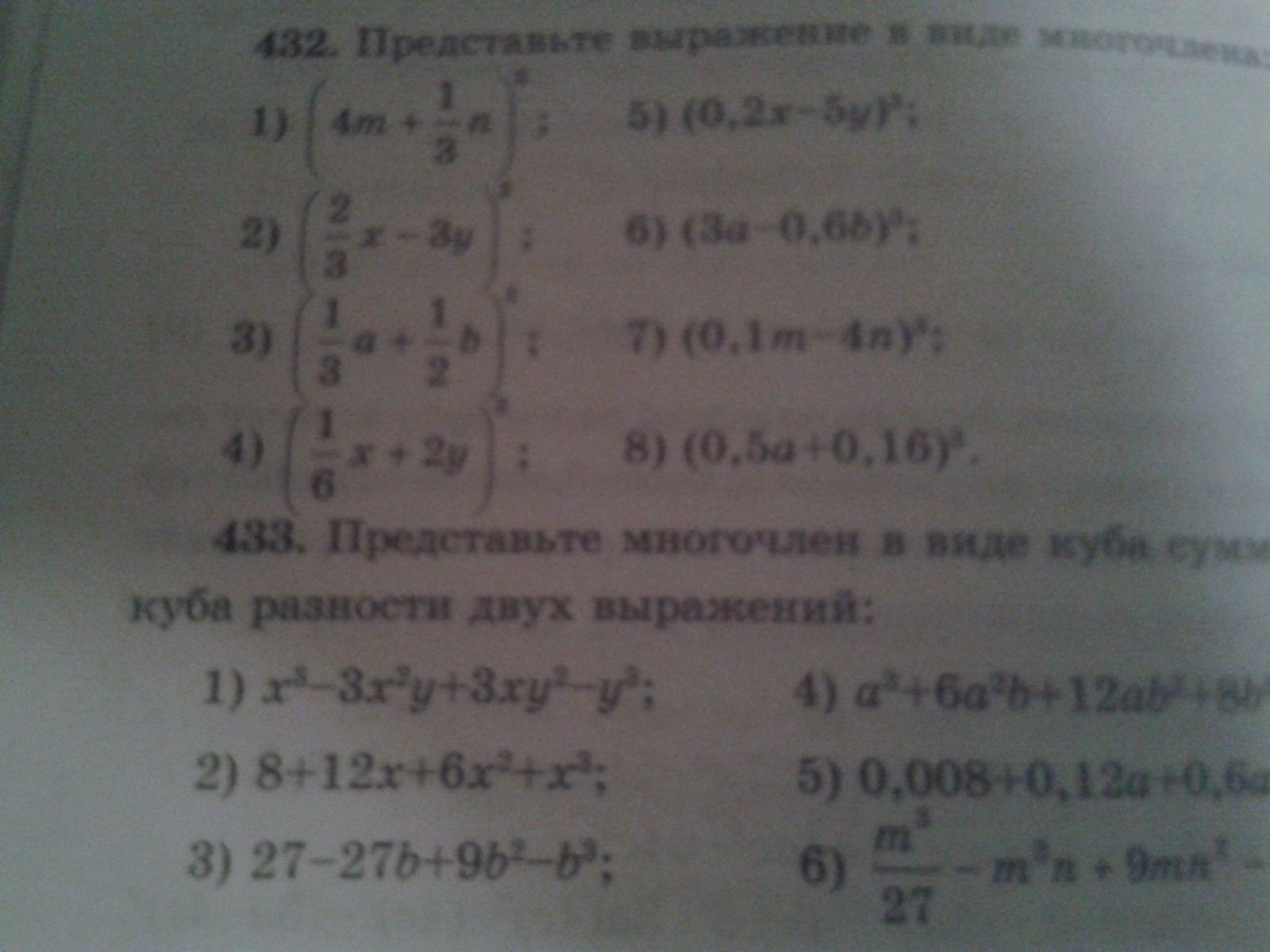 433 (х-у)в третьей степени(кубе) 432 (2/3х-3у)³≈2/3х³-3 2/3х²3у+3 2/3х3у²-3у³