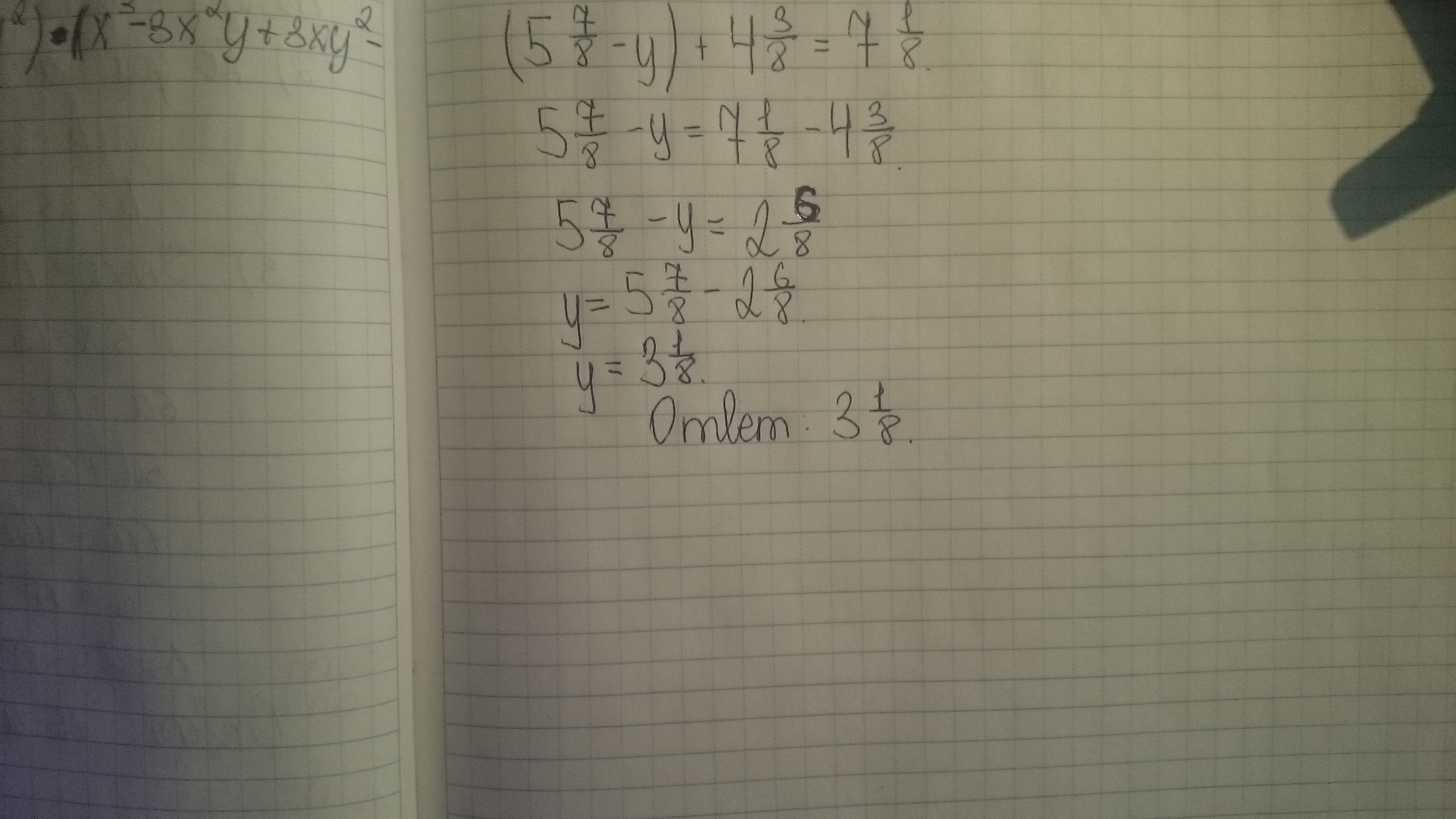 (5целых7/8семь восьмых-y)+4целых3/8 три восьмых=7целых1/8 одна восьмая