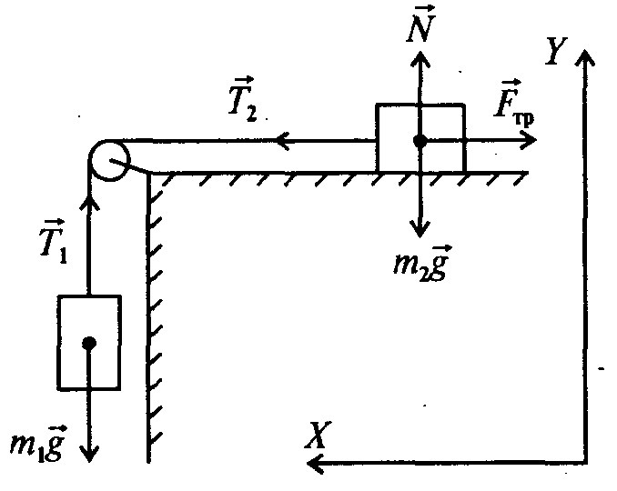 Дано m1,m2, k-коэф тр. Найти T. Все идеально