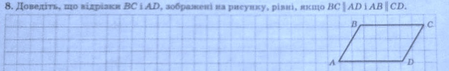 Докажите, что отрезки BC и AD равны, если BC ll AD и AB ll CD. РИСУНОК ВО ВЛОЖЕНИИ, РЕБЯТА, ОЧЕНЬ НАДО!