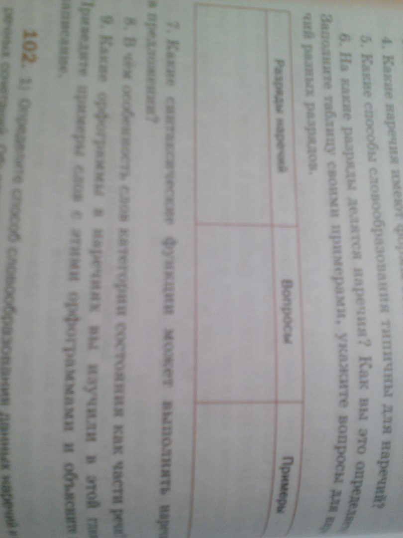 6.На какие разряды делятся наречия?Как вы это определяете?Заполните таблицу своими примерами,укажите вопросы для наречий разных разрядов.