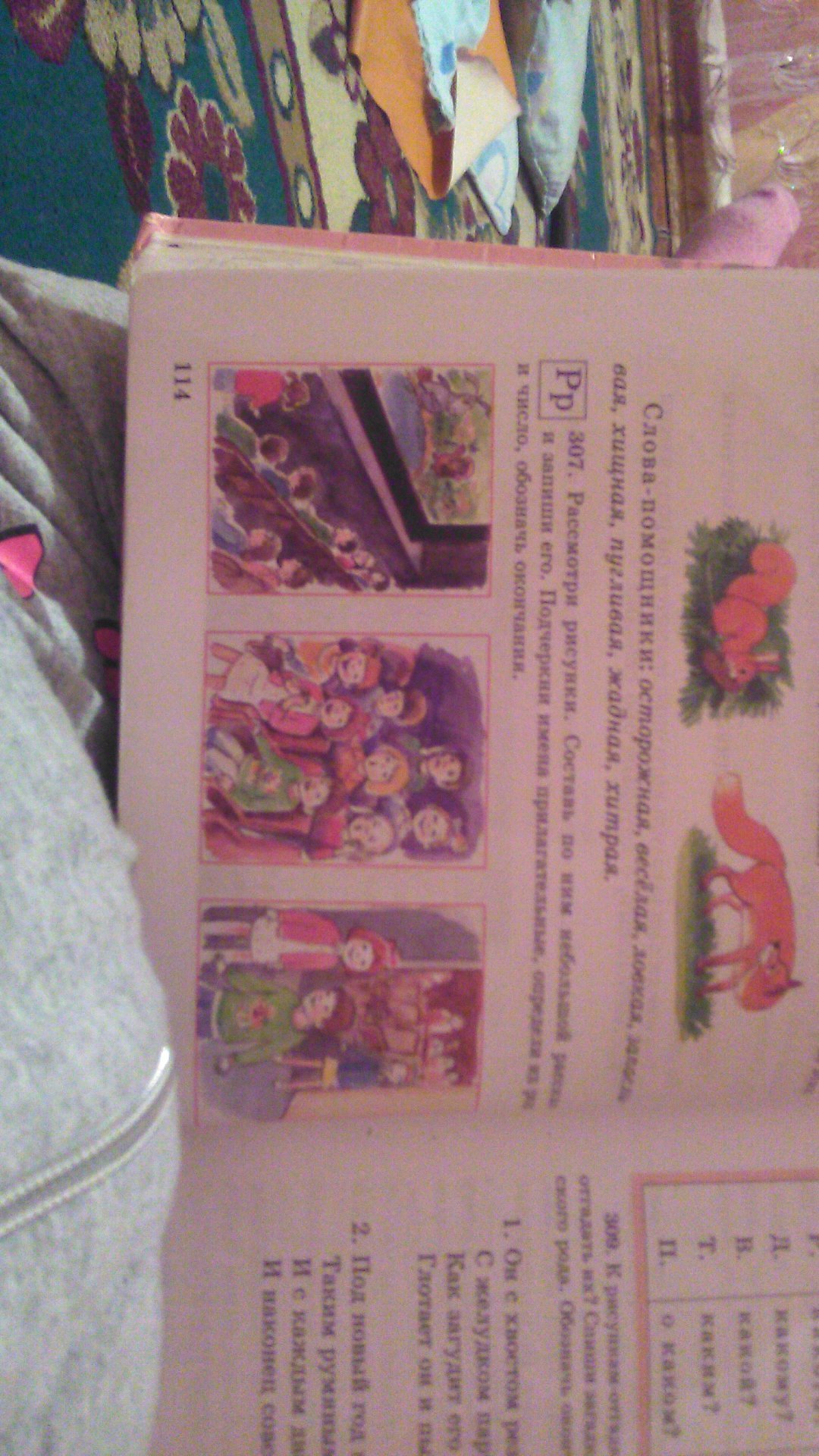 рассмотри рисунки. Составь по ним небольшой рассказ и запиши его. Подчеркни имена прилагательные, определи их род и число, обозначь окончания.