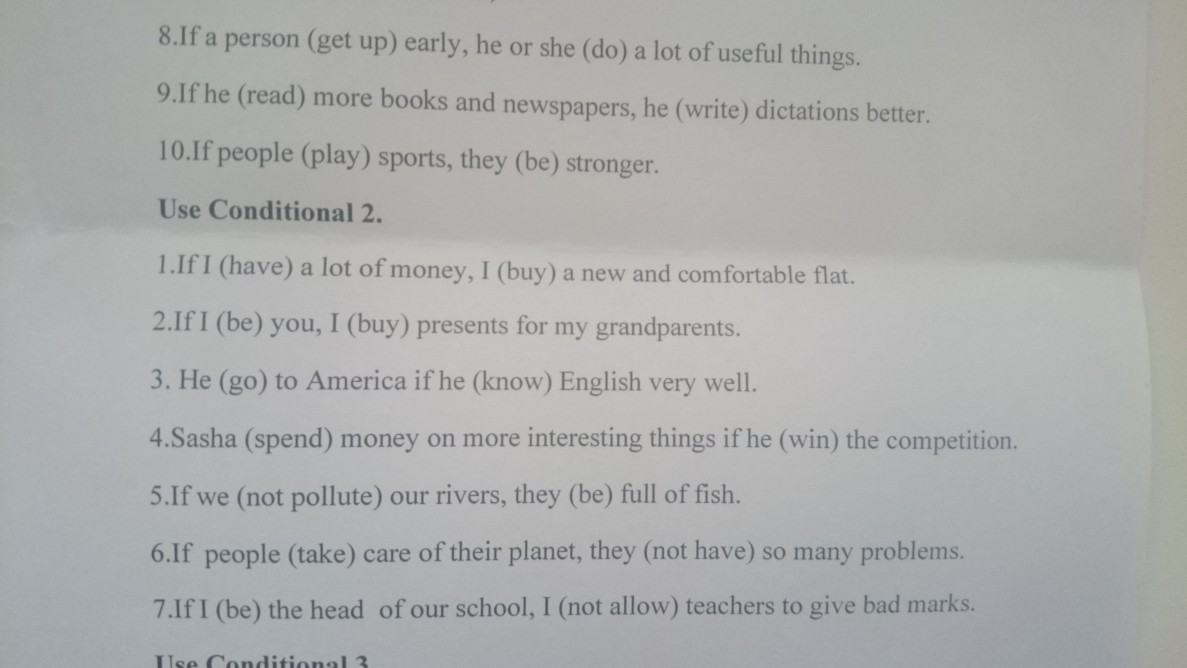 Помогите пожалуйста,слова в скобочках надо поставить first Conditional,Second conditional или в Third conditional.use 2