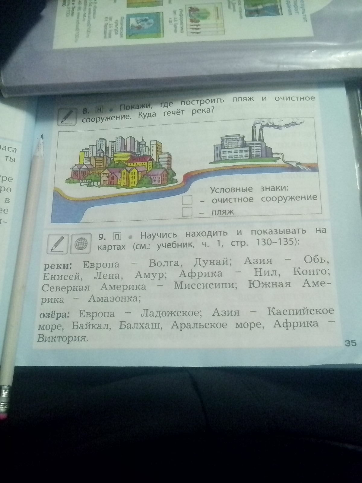 На 1-ом рисунке (где город) - пляж, на 2-ом - очистные сооружения.