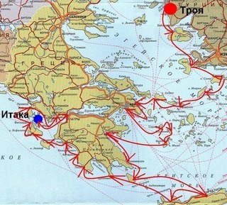 покажите на карте кратчайший морской путь который после падения Трои предстояло преодолеть Одиссею и его спутникам
