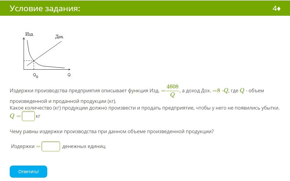 Издержки составят 4608/24 = 192 денежных единиц.