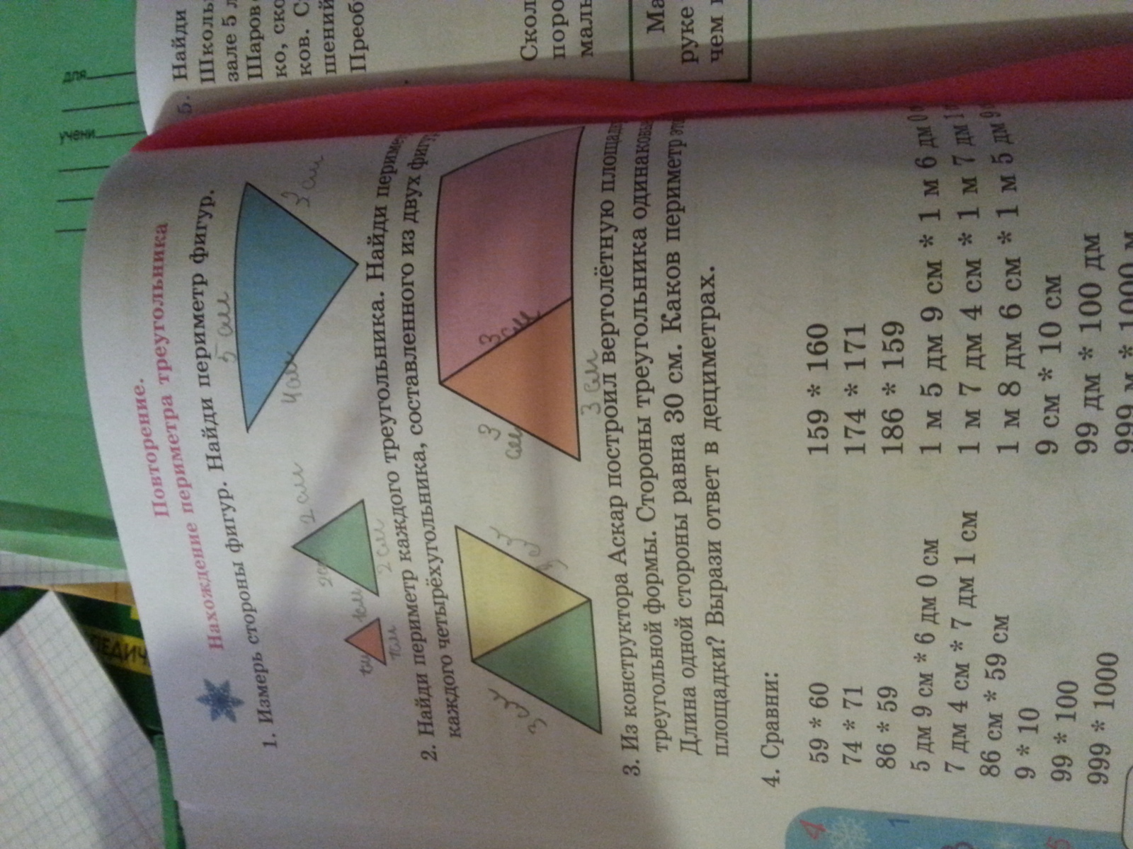 найди периметр каждого треугольника. найди периметр каждого четырёхугольника ,составленного из дв