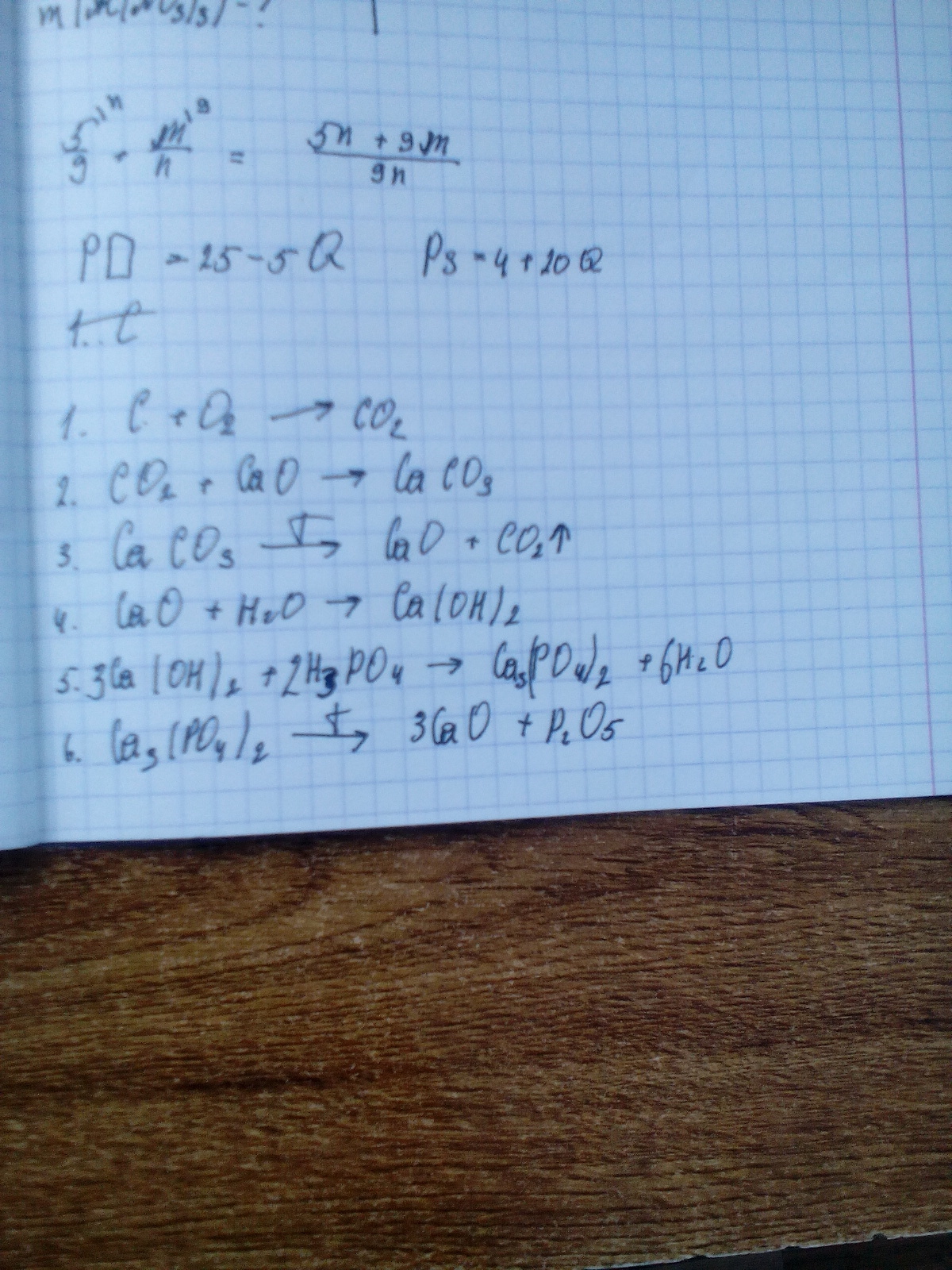 напишите уровнения реакций с помощью которых можно осуществить следующее превращение C->CO2->CaCO3->CaO->Ca (OH)2->Ca3 (PO4)2->P2O5