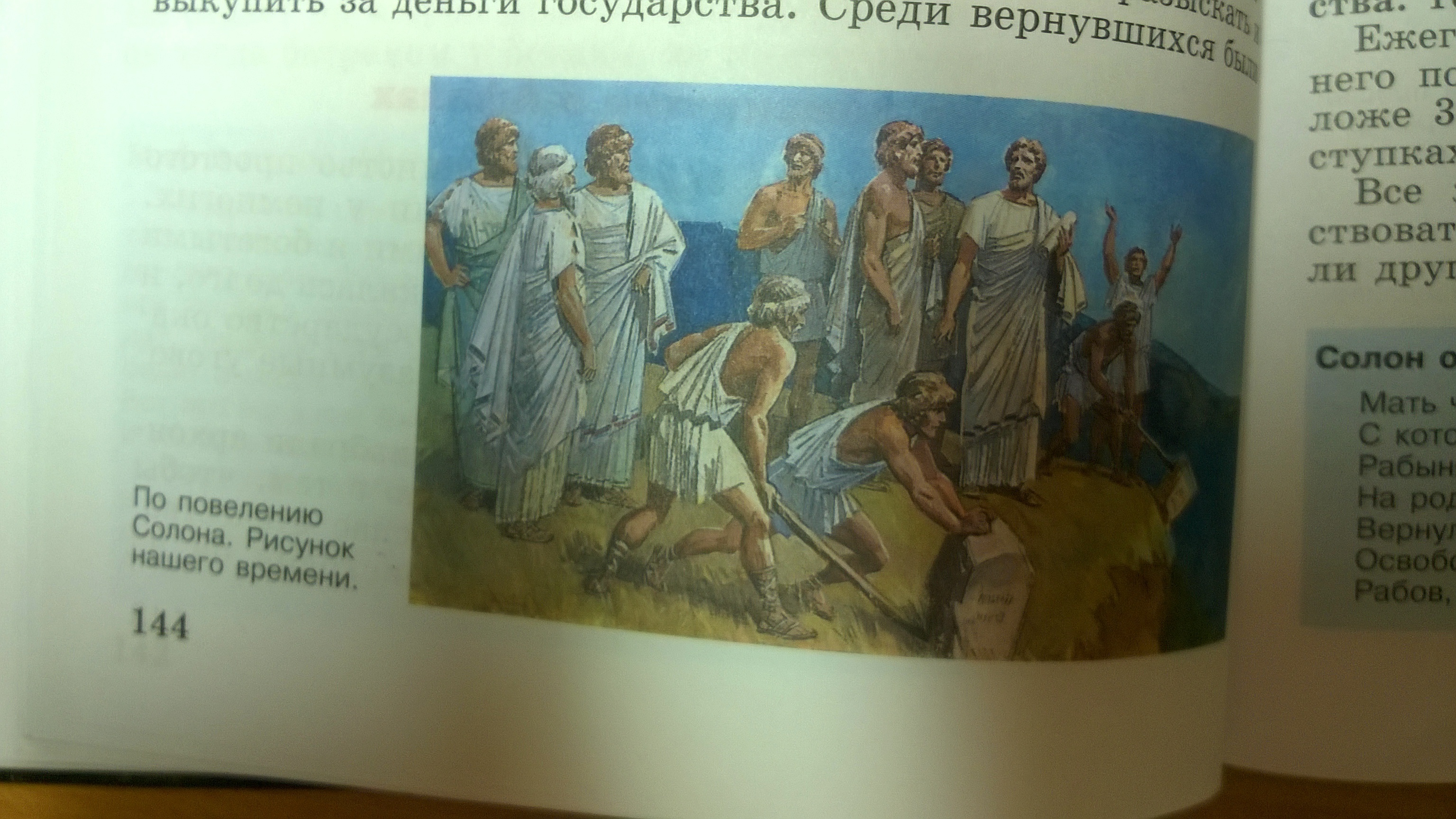 На этой картинке по приказу Солона списываются все долги свободных граждан и запрет долгового рабства.