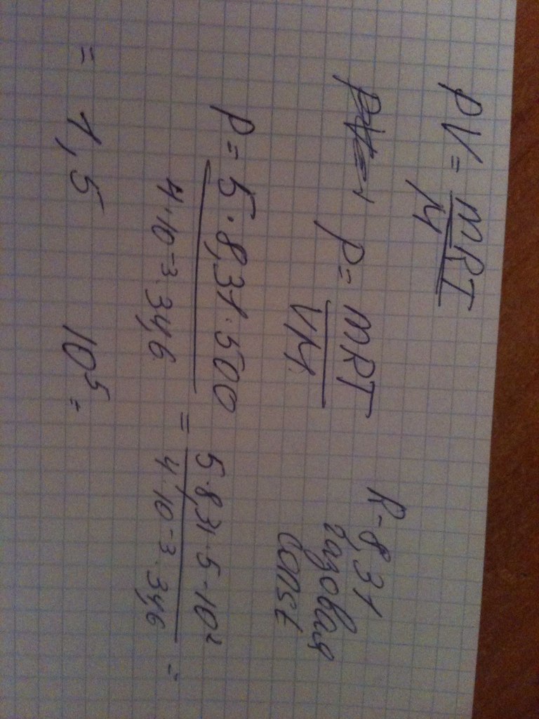 из уравнения меделеева-клаперона p*V= m*R*T/M , p=m*R*T/M*V подставляешь и решаешь:)