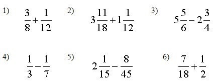 1 )11/24 2)4 25/36 3)3 1/12 4) 4/21 5) -2/45 6) 13/18