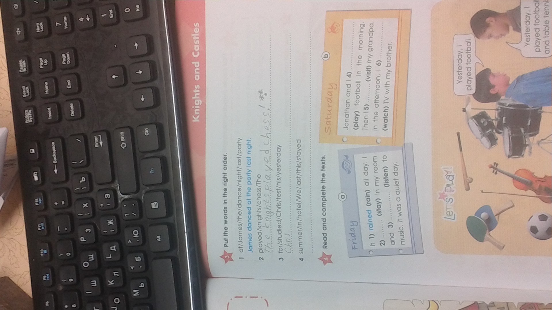 Jonathan and I 4)played football in the morning. Then I 5)visited my grandpa. In the afternoon, I 6)watched TV with my brother