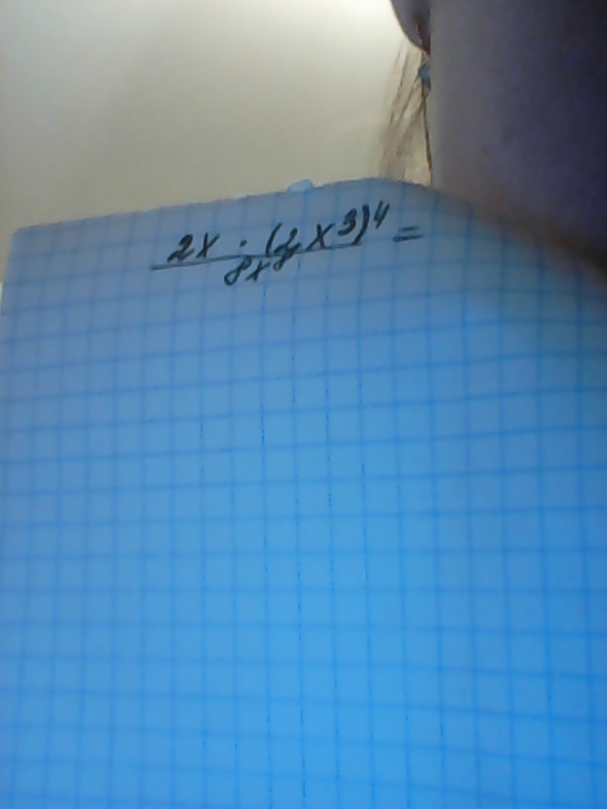 frac{2x(2x^3)^4}{8x^8} = frac{2x*16x^{12}}{8x^8} =4x^{1+12-8}=4x^5