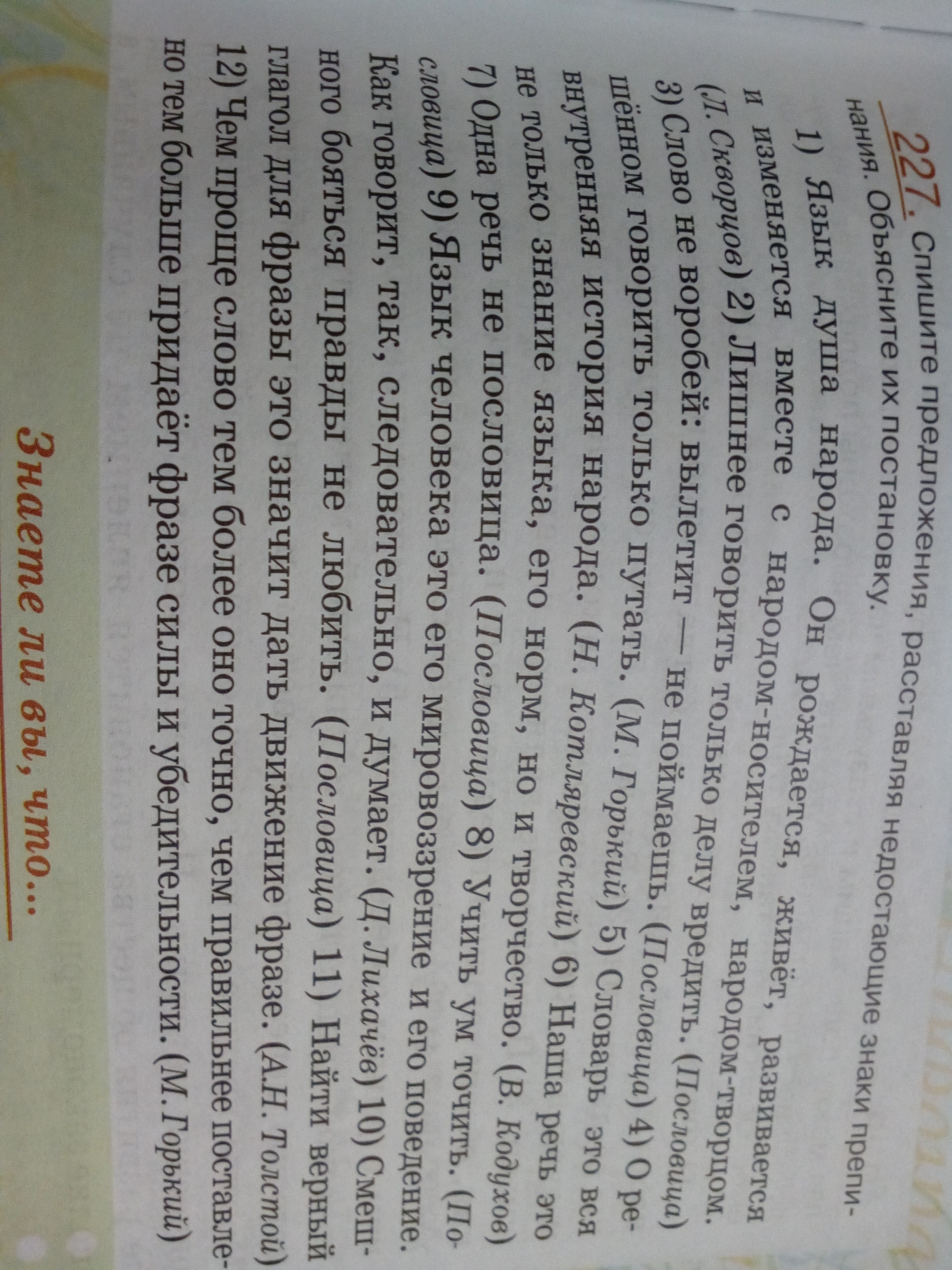 6. Наша речь (подлежащее, --) [–] это не только знание (сказуемое, =) языка, его норм и правил, но и творчество (сказуемое,=).