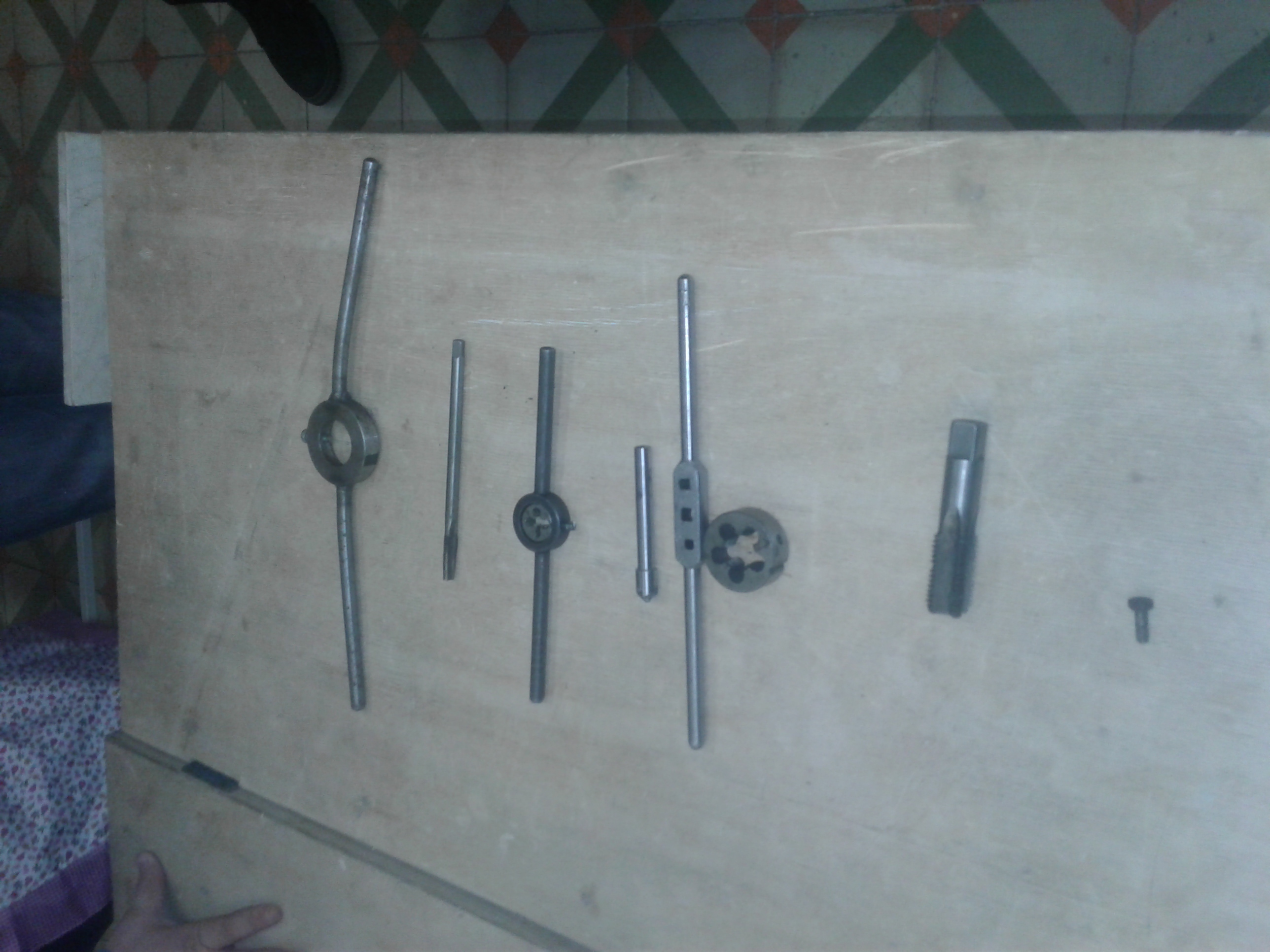 Плашкодержатель, метчик, еще один плашкодержатель, не знаю, метчикодержатель,плашка, метчик.
