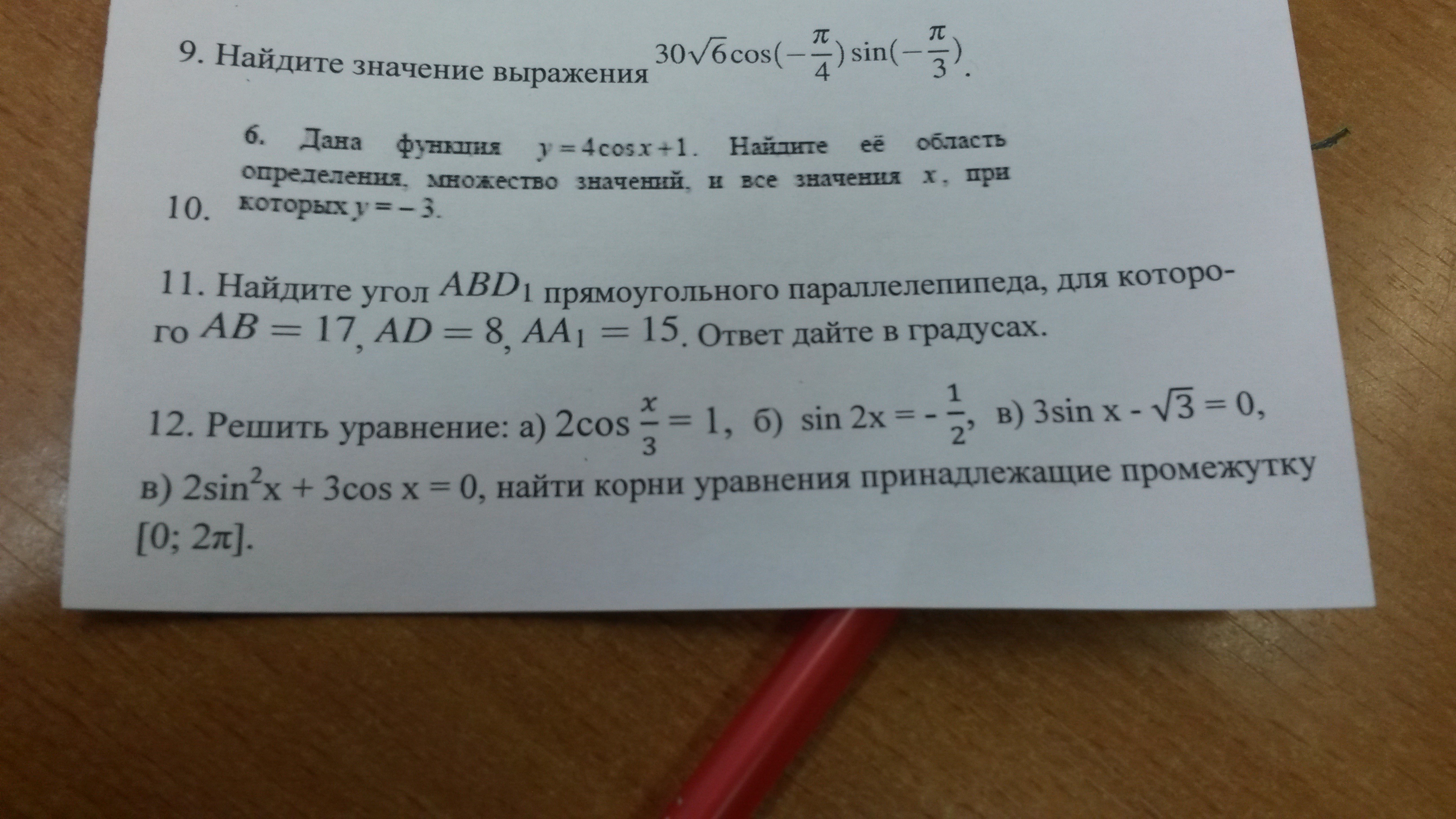 -3≤y≤5 Область значений [-3;5]. Функция равна -3 при значении косинуса -1, т.е при х=π +2πn, n∈Z.