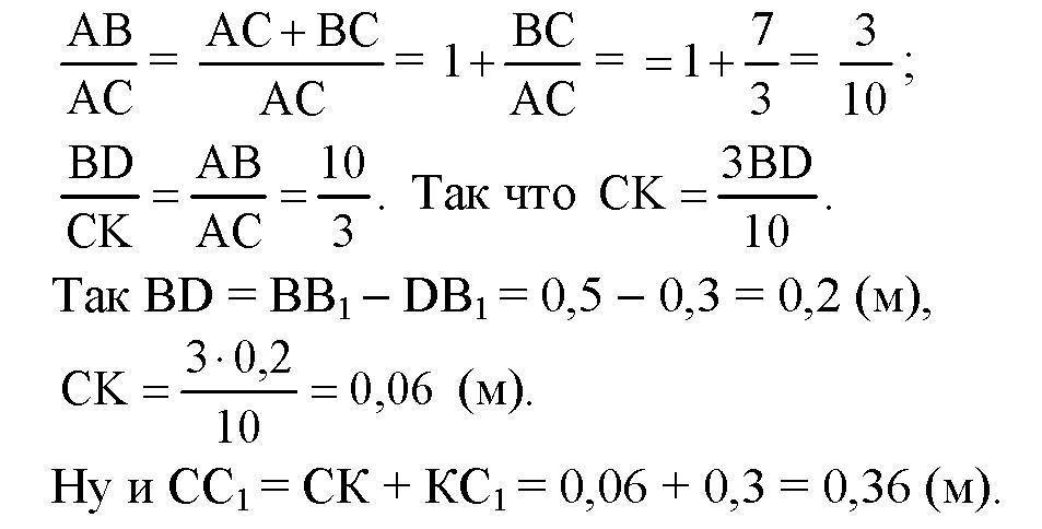 Проведем из точки А прямую AD параллельную А1В1, значит AD ⊥ BB1. Тогда АА1С1К — прямоугольник. Так что КС1 = АА1 DB1=0,3 м.