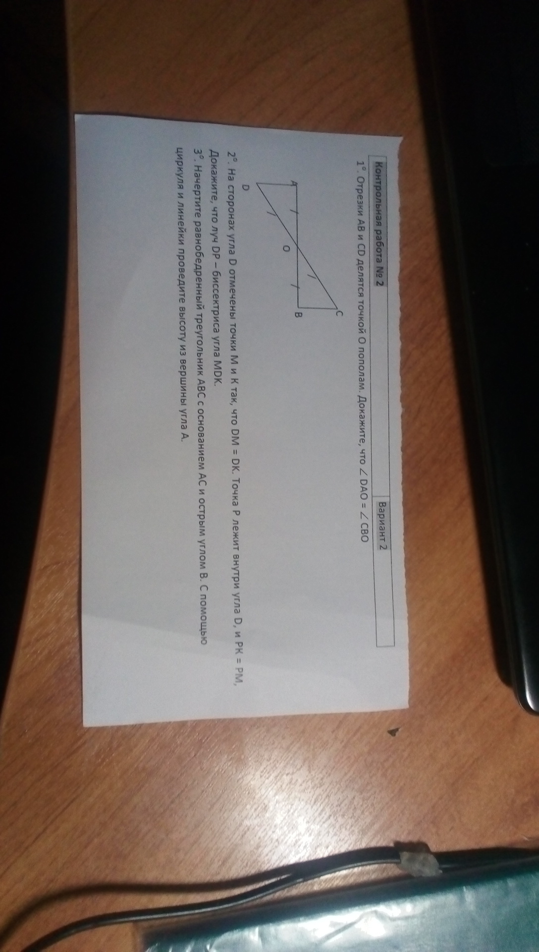 ∠AOD=∠COB т.к. вертикальные ⇒⇒ ΔAOD = ΔCOB по 2 сторонам и углу⇒⇒ ∠DAO=∠CBO