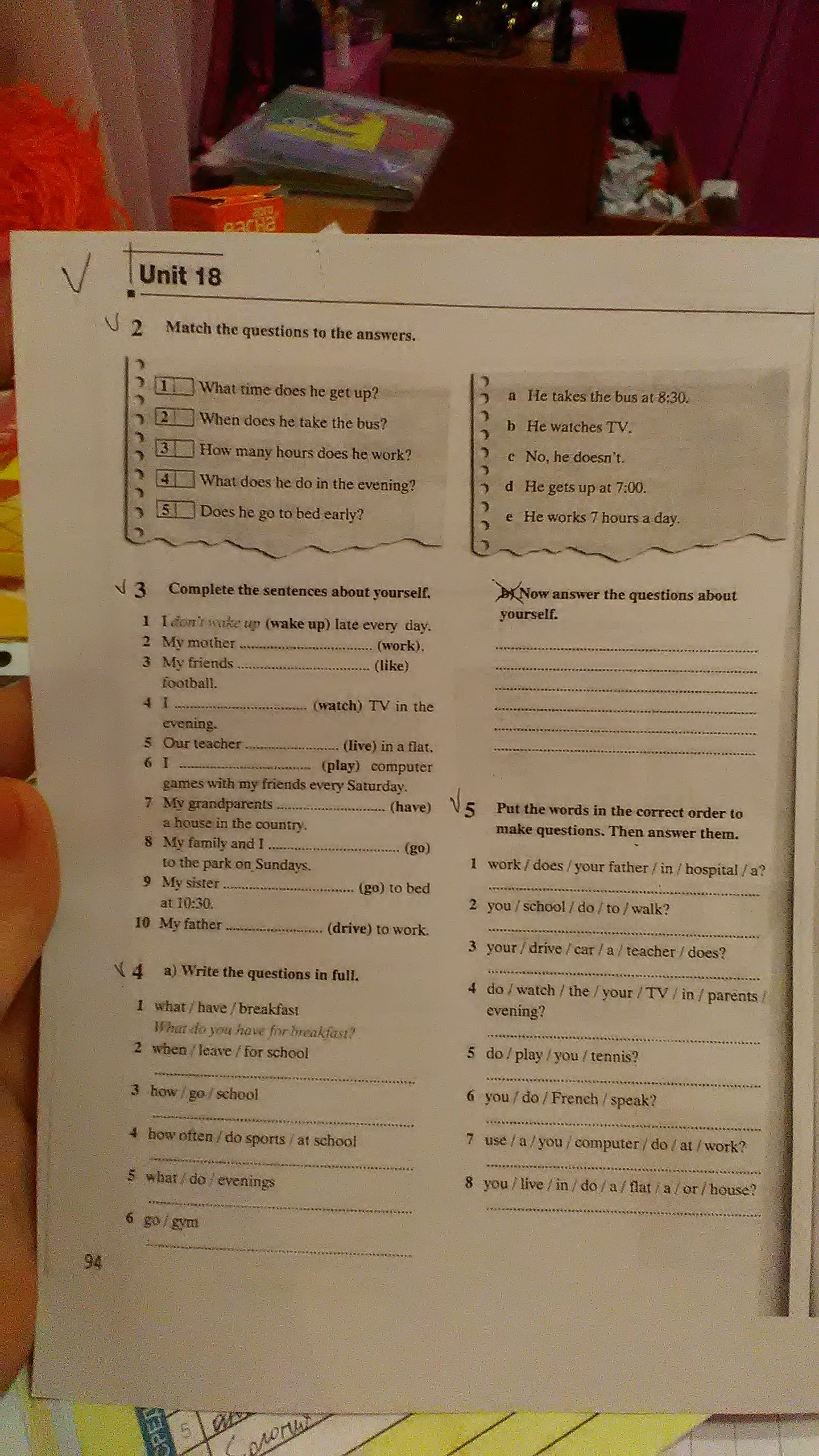 2)My mother works as a teacher. 3)My friends like to play footbal 4)I don't watch Tv in the evening 5)Our teacher lives in a flat. 6)I play computer games with my friends every saturday 7)My grandparents have a house in the country 8)My family and I go to park every Sundays 8)Mt sister goes to bed at 10:30 9)Mt father drives to work