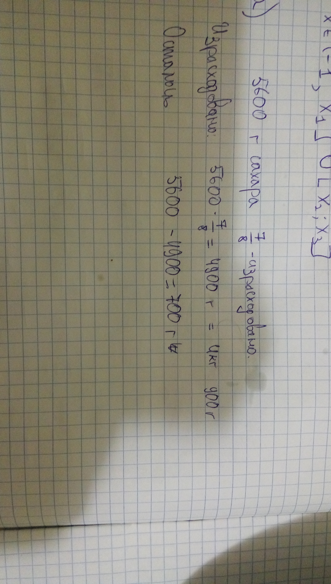 израсходовано: весь сахар умножаешь на 7/8. для остатка из всего вычитаешь израсходованное