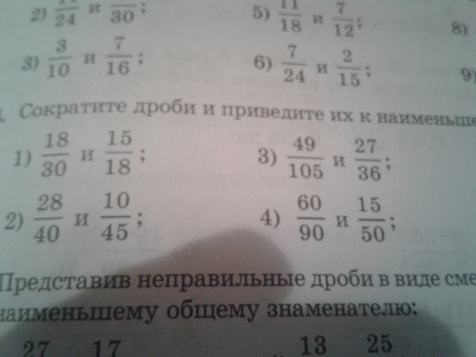 Сократите дроби и Приведите их к наименьшему общему знаменателю