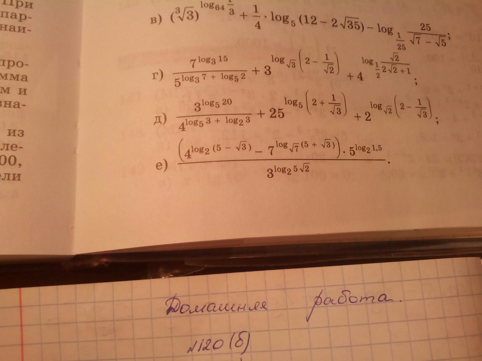 Боги математики вы где? Мне нужна срочно помощь и поэтому призываю Вас! Не проходи мимо. Помогите,пожалуйста. По буквой е и в тетради два последних примера.