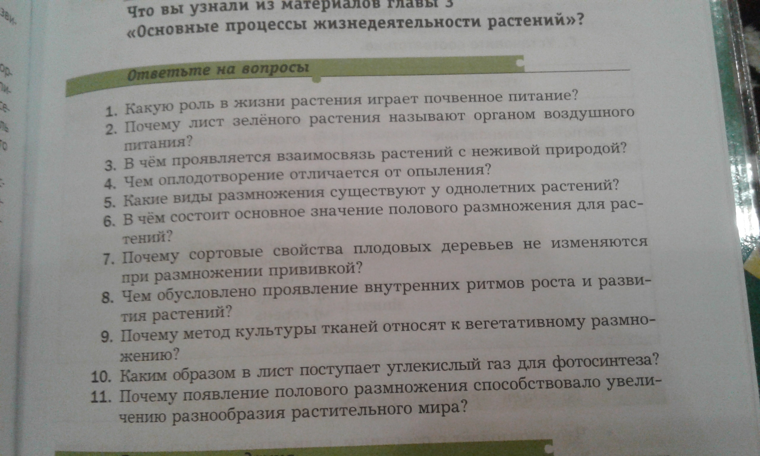 8 вопрос это потому что Должна быть вода почва хорошая и свет и растение будет рости 1 вопрос через неё появлятся питальные вещества 6 вопрос это мужские и женские яйцоклетки и они помогают размножить дальше растения плод создают 3 это бывают у мхом помойму или у других у них мёртвые клетки они белые и они не живые