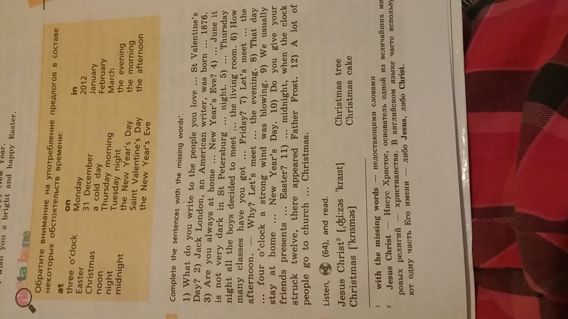 1) on 2) in 3) on 4) in, at 5) in, in 6) on 7) in, in 8) about(?) 9) on 10) at 11) at 12) on