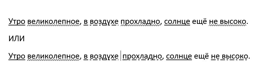 Расставьте пропущенные знаки препинания . Сделайте схему к предложению. Утро великолепное в воздухе прохладно солнце ещё не высоко.