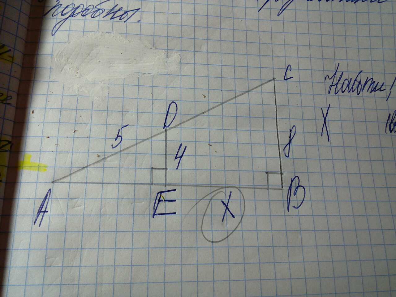 ае=3 - пифагоров треугольник. аде подобен авс . коэффициент подобия 8/4 =2. значит аб= 2 ае и еб равно ае= 3