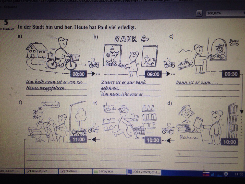 e. Um 10.30 ist er in den Supermarkt gegangen und hat eingekauft.
