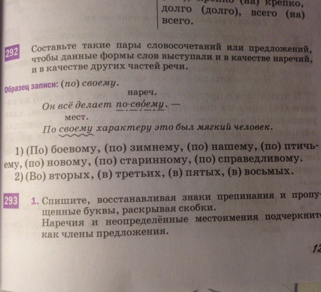 Надо составить такие предложения, что бы данные формы слов выступали и как наречия и в качестве другой части речи.