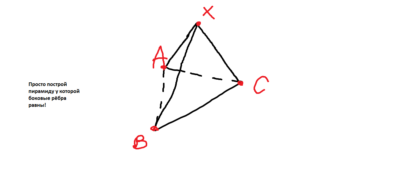 даны три точки: A B C. Постройте точку X, которая одинаково удалена от точек A и B и находится на данном расстоянии от точки C.