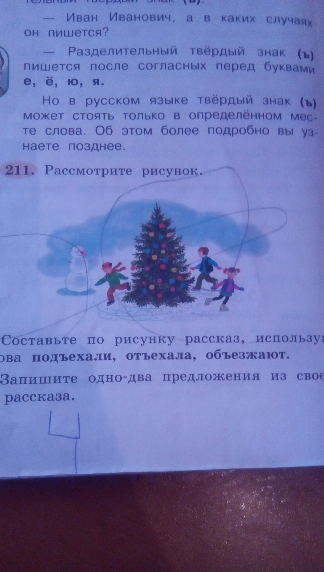 Вот мы подЬехали и пошли на каток.Смотрим,полный каток,негде кататься.Все ребята обьезжают вокруг елки. смотрят на игрушки,они все красочные. Катя отьехала от нас и решила сделать нам сюрприз.Она на Новый год подарила нам подарки нам всем было очень приятно