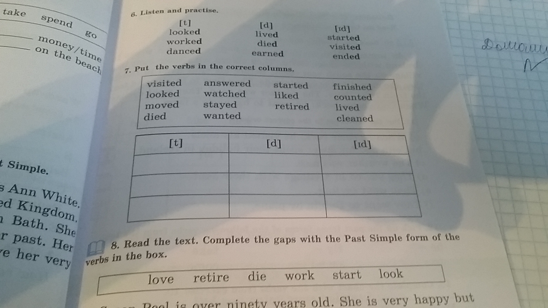 [d] - moved, died, answered, stayed, retired, lived, cleaned;