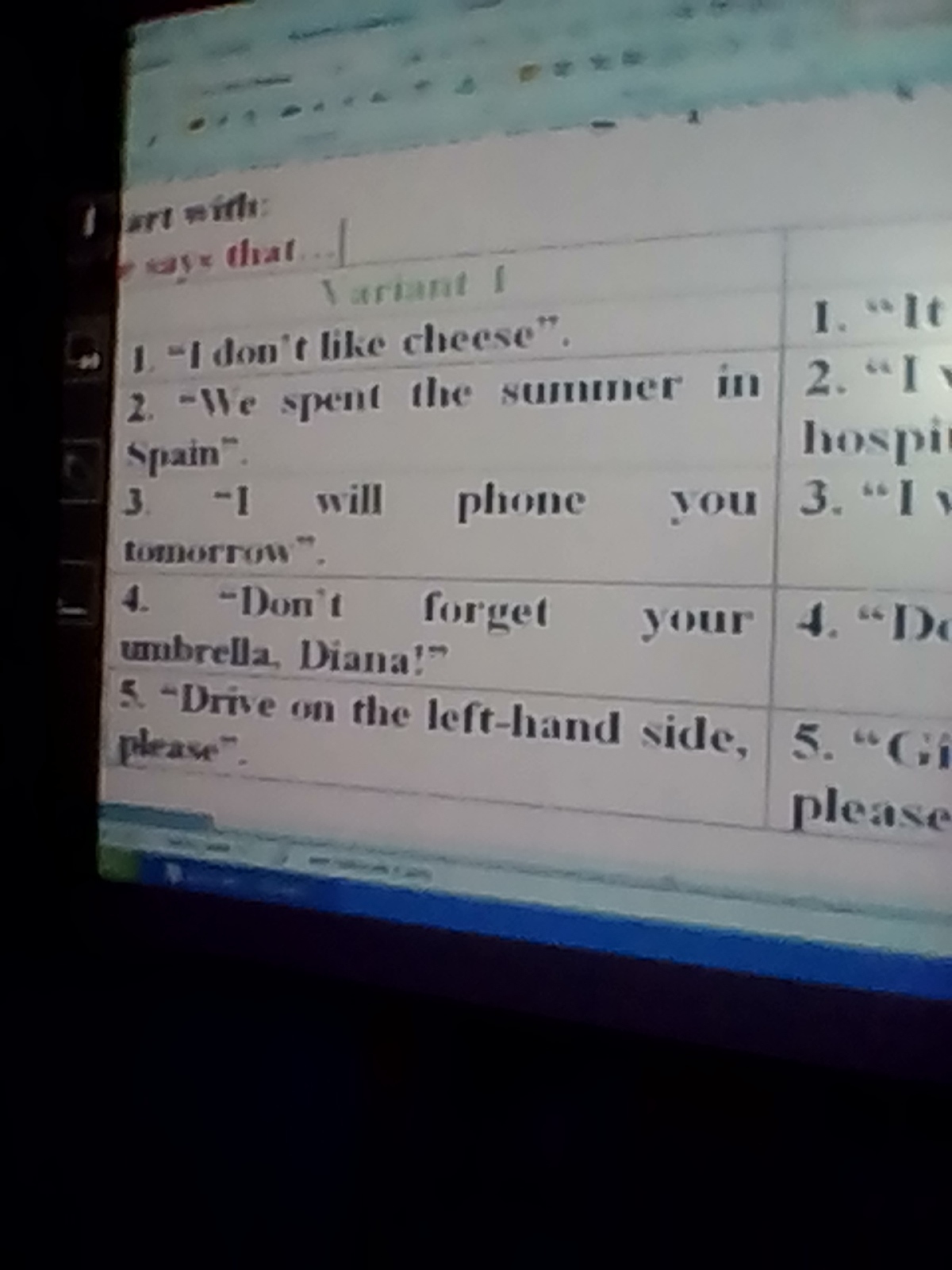 4)She said her to didn't forget her umbrella