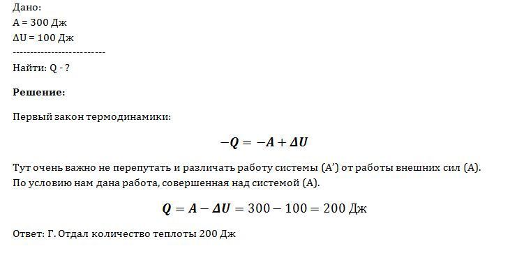 Над газом внешние силы совершили работу 300Дж, а его внутренняя энергия увеличилась на 100Дж. В этом процессе газ...